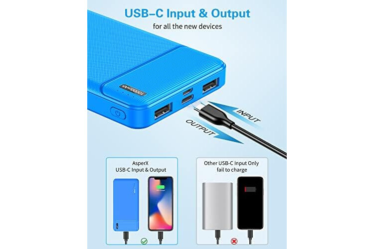 【USB C Input & Output】Upgrade portable battery charger has a USB-C In & Out port to perfectly fit your new iPhones, iPad and all upcoming USB-C devices. Also configured two USB-A output ports that recognize all connected devices and distribute load up to 5V 2.4A effectively. Therefore our phone battery power bank can work with not only all the phones, tablets but your smaller devices like AirPods, Bluetooth headphones, fitness trackers, smart watches, heated vest etc.