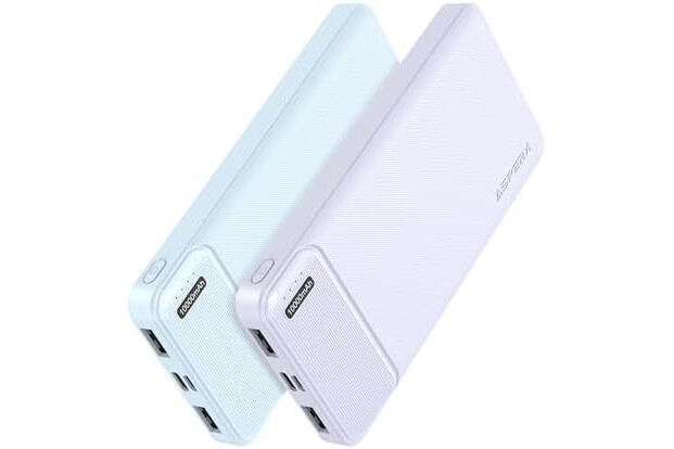 【10000mAh Power Bank Pack of 2】 These two 10000mAh portable chargers are small enough to go into any pocket or backpack. These battery packs are powerful enough to last the entire day. Each one charges the iPhone X 2.4 times, the iPhone 8 3.6 times, and the Samsung Galaxy S9 2.2 times.