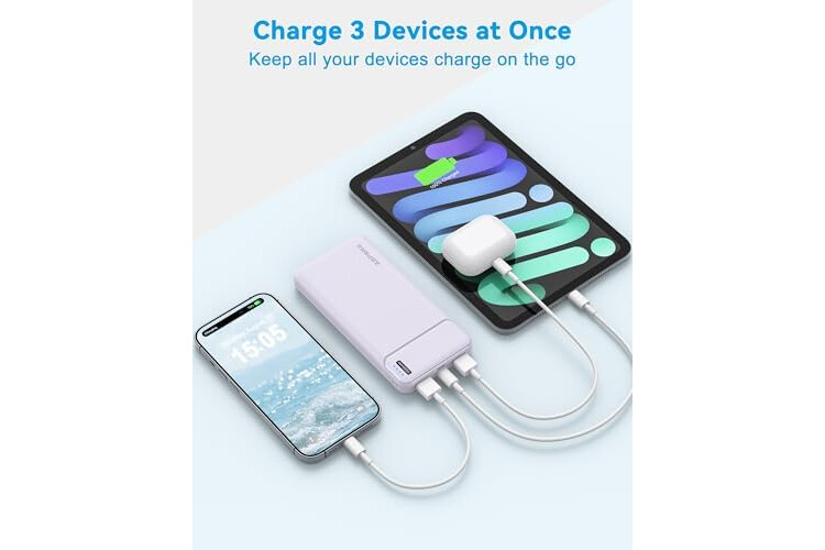 【Charge THREE at Once】 With one USB-C port and two USB ports built-in, it can juice up THREE devices simultaneously. Triple-port design allows you to share portable power with families and friends.
