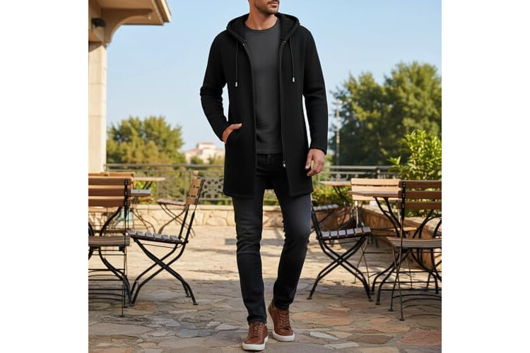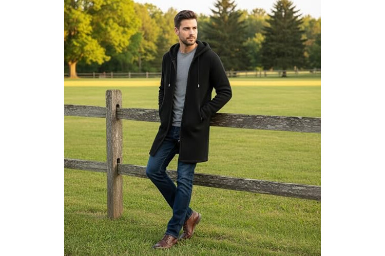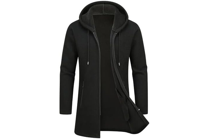MODFUL Mens Knitted Cardigan Hooded Warm Sweater Mid-Length Full Zipper Coat with Pockets