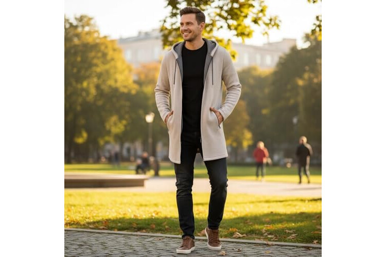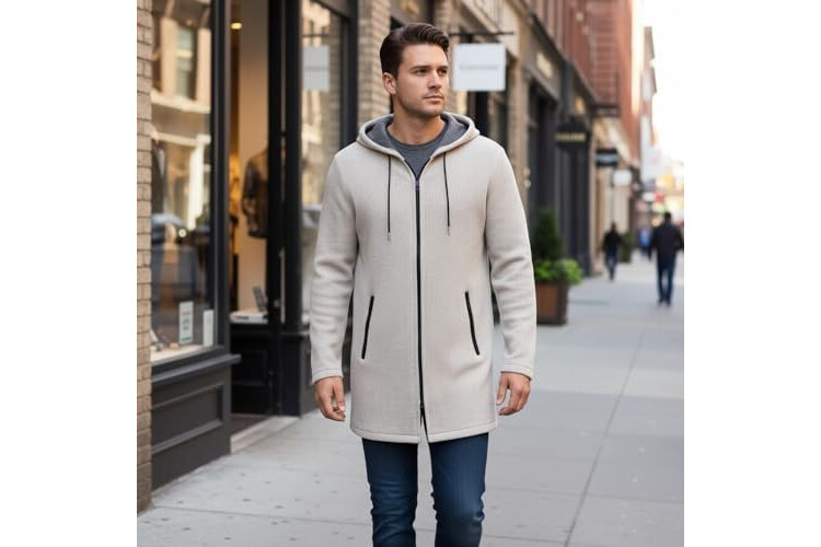 MODFUL Mens Knitted Cardigan Hooded Warm Sweater Mid-Length Full Zipper Coat with Pockets