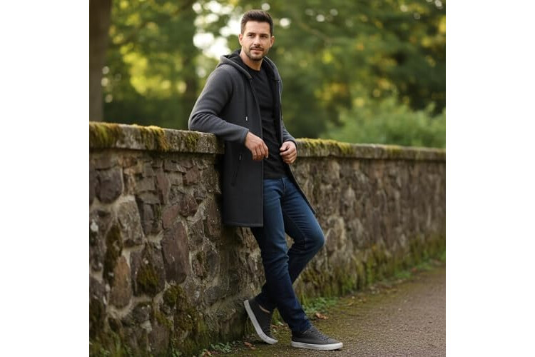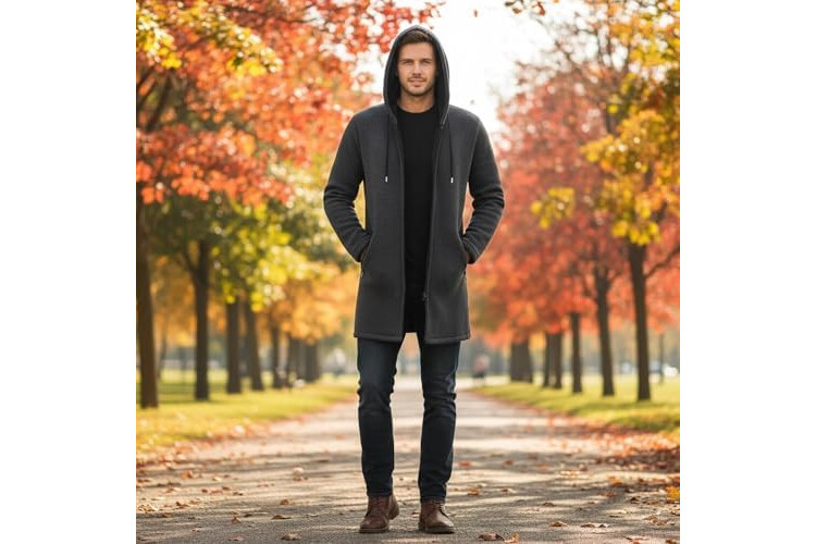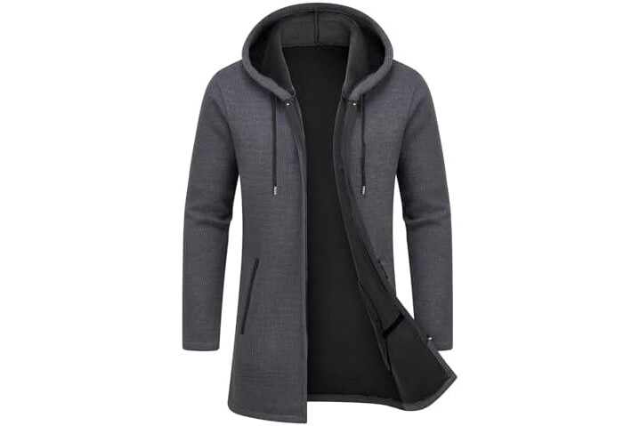 MODFUL Mens Knitted Cardigan Hooded Warm Sweater Mid-Length Full Zipper Coat with Pockets