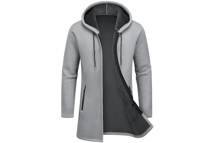 MODFUL Mens Knitted Cardigan Hooded Warm Sweater Mid-Length Full Zipper Coat with Pockets