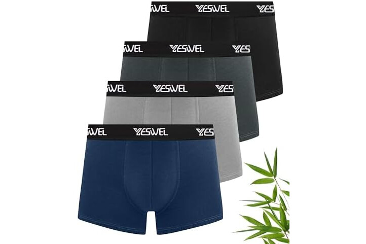 Bamboo Boxers for Men, No Itchy Labels Underwear, Breathable Boxer Shorts, Soft Underpants Trunks Multipack of 4 (M-3XL)