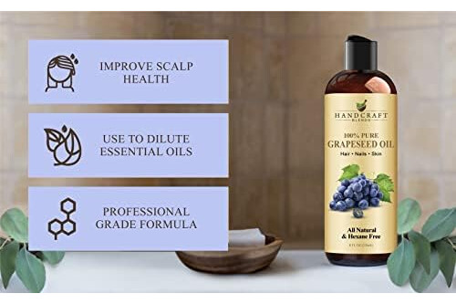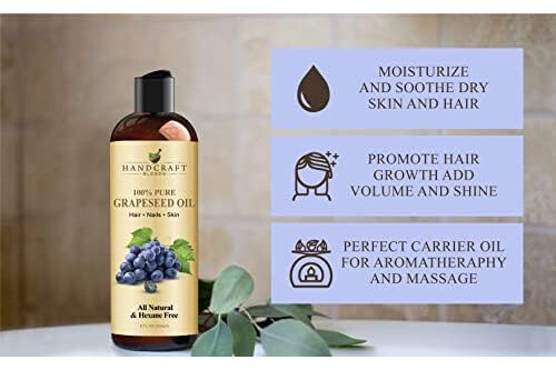 100% PURE & NATURAL GRAPESEED OIL is most commonly used for aromatherapy, massage and as a hair & skin moisturizer. Our premium quality oil Fragrance Free, Hexane Free, Preservative Free, Chemical Free, and 100% Vegan.