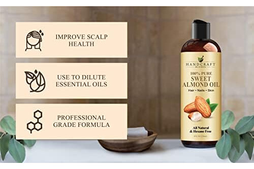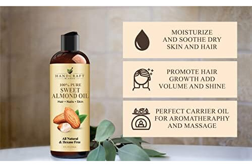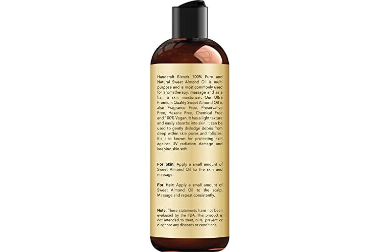 100% PURE & NATURAL SWEET ALMOND OIL is most used for aromatherapy, massage therapy and as a hair and skin moisturizer. Our almond oil is Fragrance Free, Hexane Free, Preservative Free, Chemical Free and 100% Vegan.