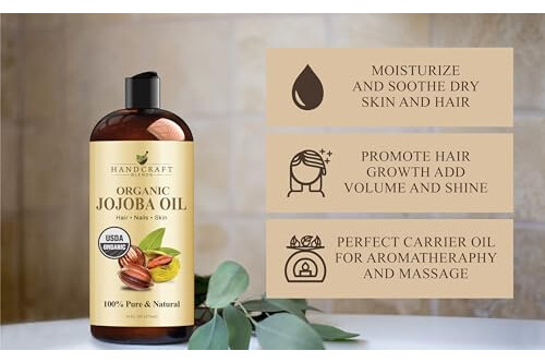 Handcraft Blends USDA Organic Jojoba Oil - Cold-Pressed 473 ml - 100% Pure and Natural - Premium Grade Carrier Oil for Skin and Hair - Hair and Body - Massage - Hexane-Free