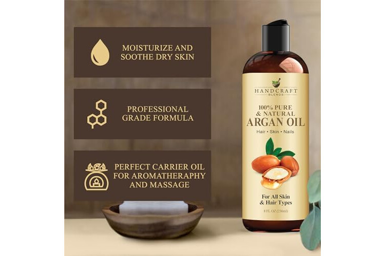 Handcraft Blends Argan Oil - 236 ml - 100% Pure and Natural - Premium Grade Carrier Oil for Skin and Hair - Hair and Body - Massage - Cold-Pressed