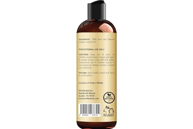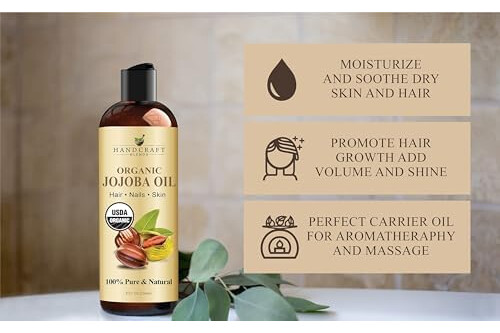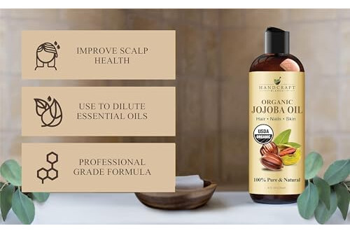 Handcraft Blends USDA Organic Jojoba Oil - Cold-Pressed 236 ml - 100% Pure and Natural - Premium Grade Carrier Oil for Skin and Hair - Hair and Body - Massage - Hexane-Free