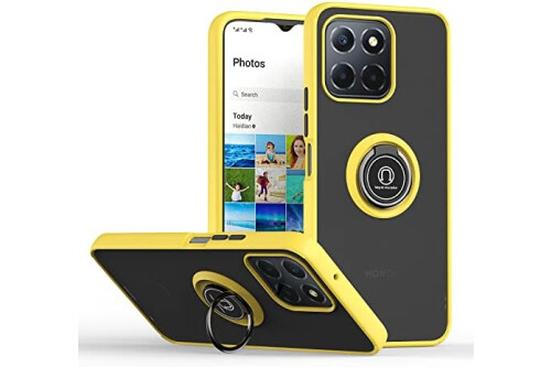 Honor X8a Phone Case (Not Honor X8), Slim Matte Texture TPU Phone Case with Ring Kickstand Reinforced Corners Airbag Shockproof Soft Silicone Cover Protective Case for Honor X8a, Yellow