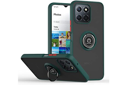Honor X8a Phone Case (Not Honor X8), Slim Matte Texture TPU Phone Case with Ring Kickstand Reinforced Corners Airbag Shockproof Soft Silicone Cover Protective Case for Honor X8a, Green
