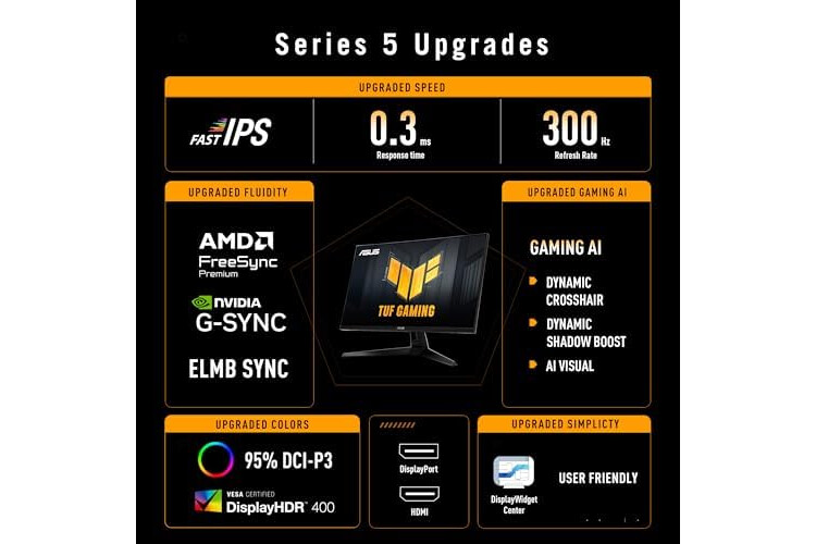 ASUS TUF Gaming VG27AQM5A QHD Monitor (27 Inches, 2560 x 1440, Fast IPS, 0.3 ms Response Time, 300 Hz, Speaker, ELMB Sync, HDMi, DisplayPort, USB-C)
