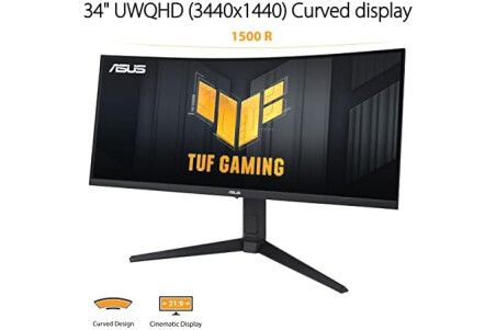 ASUS TUF Gaming VG34VQEL1A Curved Gaming Monitor – 34 inch UWQHD (3440 x 1440), 100Hz, Curved design, Extreme Low Motion Blur, Freesync, 1ms (MPRT),125% sRGB, HDR