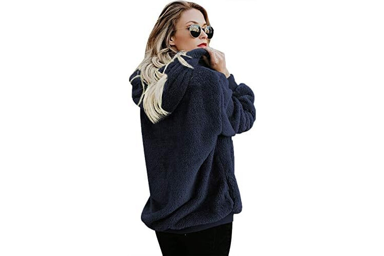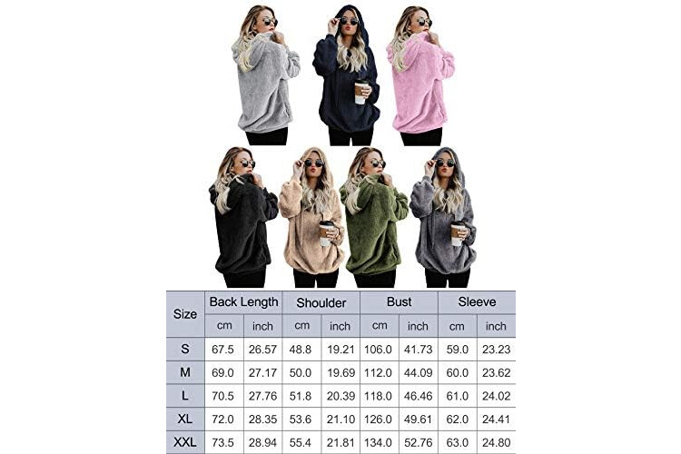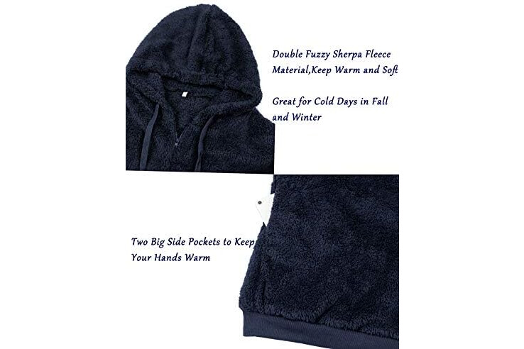 iWoo Teddy Fleece Sweatshirts Womens Casual Double Fuzzy Fluffy Hoodie Solid Color Warm Stylish 1/4 Zip Pullover with Pockets