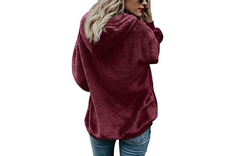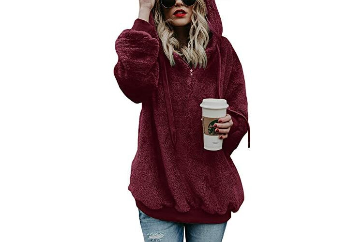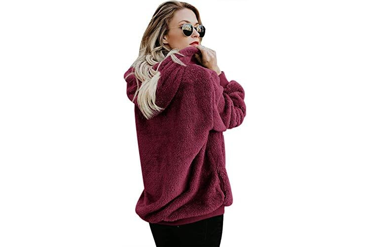 iWoo Teddy Fleece Sweatshirts Womens Casual Double Fuzzy Fluffy Hoodie Solid Color Warm Stylish 1/4 Zip Pullover with Pockets