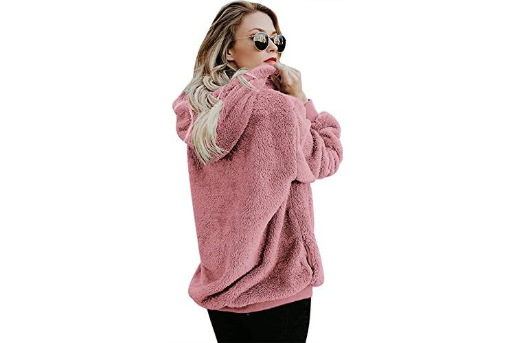 iWoo Teddy Fleece Sweatshirts Womens Casual Double Fuzzy Fluffy Hoodie Solid Color Warm Stylish 1/4 Zip Pullover with Pockets