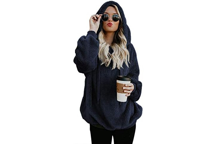 iWoo Teddy Fleece Sweatshirts Womens Casual Double Fuzzy Fluffy Hoodie Solid Color Warm Stylish 1/4 Zip Pullover with Pockets
