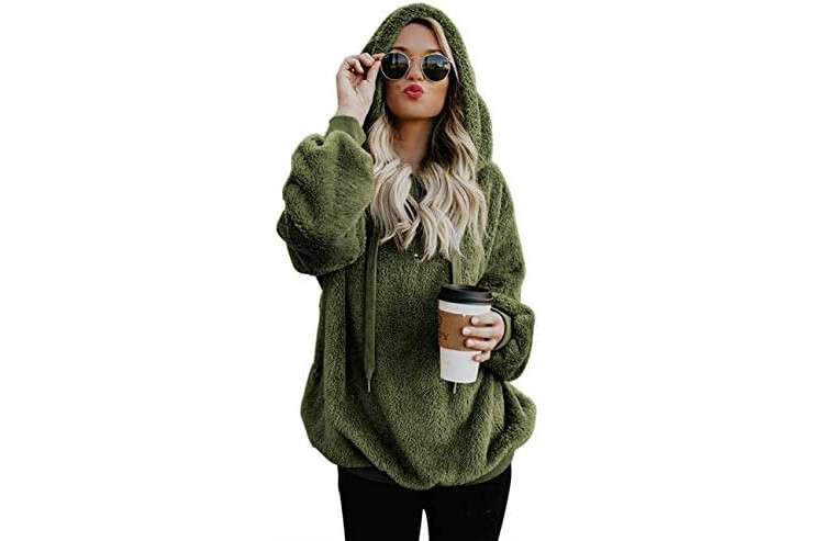 iWoo Teddy Fleece Sweatshirts Womens Casual Double Fuzzy Fluffy Hoodie Solid Color Warm Stylish 1/4 Zip Pullover with Pockets