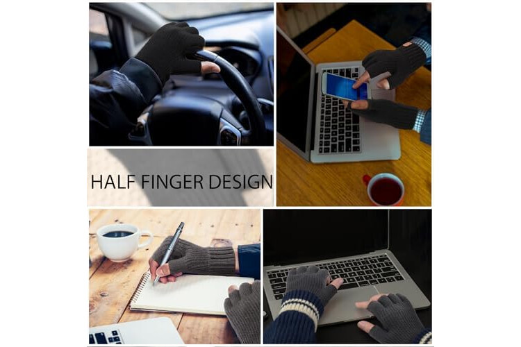 Fingerless Gloves for Women Men, Thermal Winter Warm Half Finger Gloves Plush Knitted Glove for Outdoor Driving Working Running Cycling
