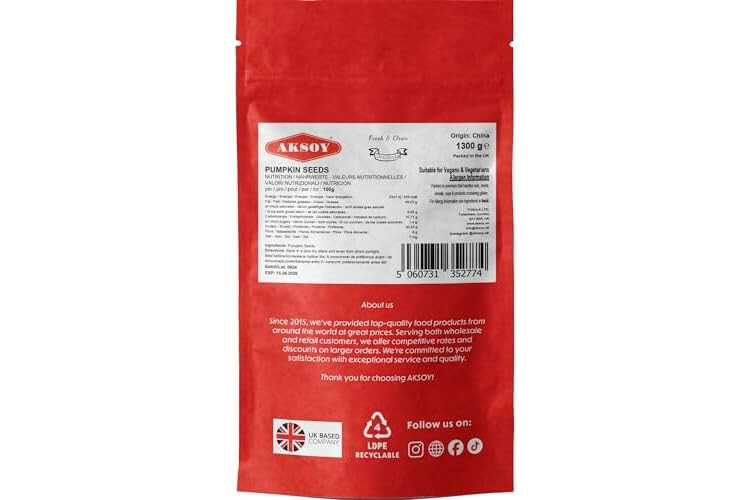 Rich in nutrients, Aksoy Pumpkin Seeds are GMO-free and vegan, making them ideal for snacking, baking, or adding a healthy crunch to your favorite dishes.