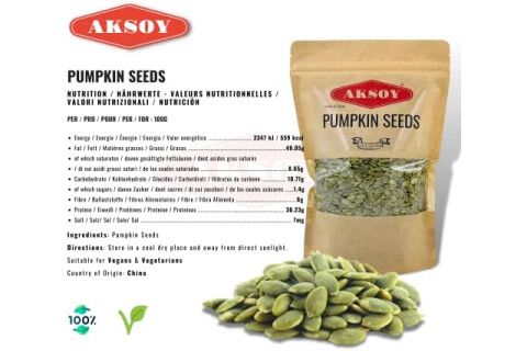 Rich in nutrients, Aksoy Pumpkin Seeds are GMO-free and vegan, making them ideal for snacking, baking, or adding a healthy crunch to your favorite dishes.