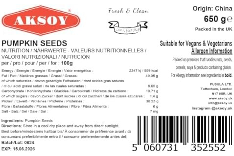 Aksoy Pumpkin Seeds 650Gr | Premium Quality, GMO-Free & Vegan – High in Protein & Fiber, Perfect for Snacking, Baking, Salads, Healthy Recipes & More Ideas