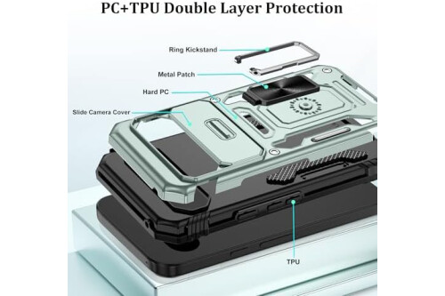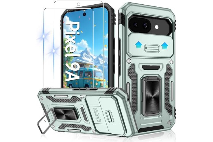 for Google Pixel 9A Case with 2 Pack Screen Protector, Military Grade Shockproof, Slide Camera Cover, Ring Stand Phone Case for Google Pixel 9A, Alpine Green