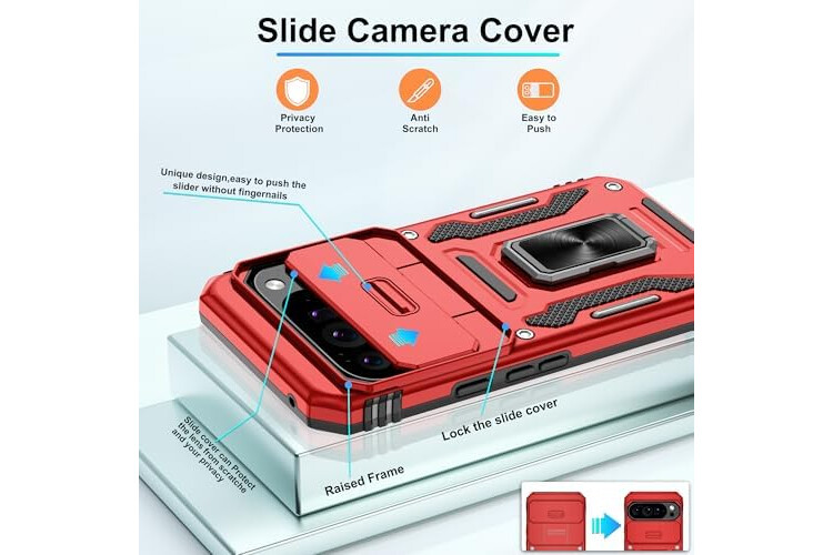Unique Design:Pixel 10 pro xl case's sliding camera cover protects camera from shattering, the raised design of camera aperture edges provide effective protection for the screen and camera.The design of back with unique texture provides great grip feeling, anti-scratch,anti-slip,shockproof,google pixel 10 pro xl case gives your phone stronger protection