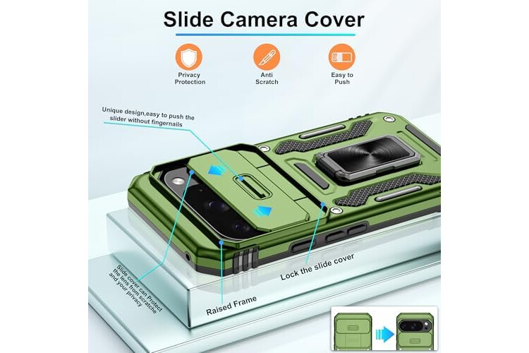 Unique Design:Pixel 10 case's sliding camera cover protects camera from shattering, the raised design of camera aperture edges provide effective protection for the screen and camera.The design of back with unique texture provides great grip feeling, anti-scratch,anti-slip,shockproof,google pixel 10 pro phone case gives your phone stronger protection