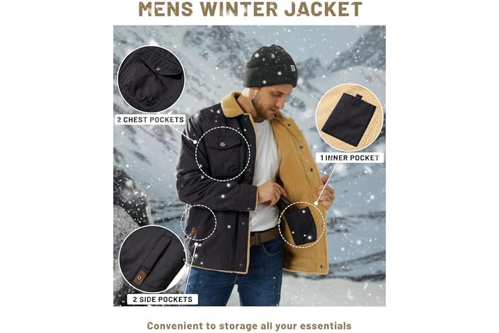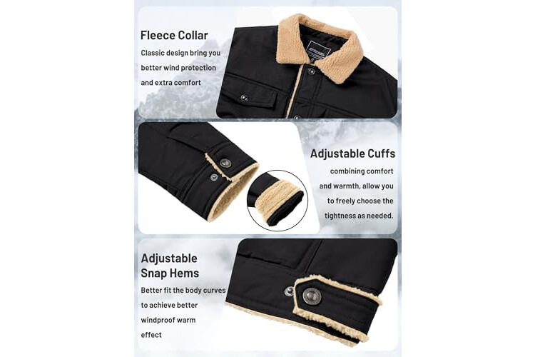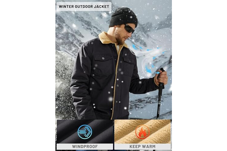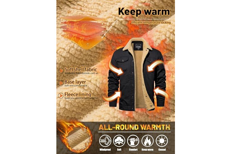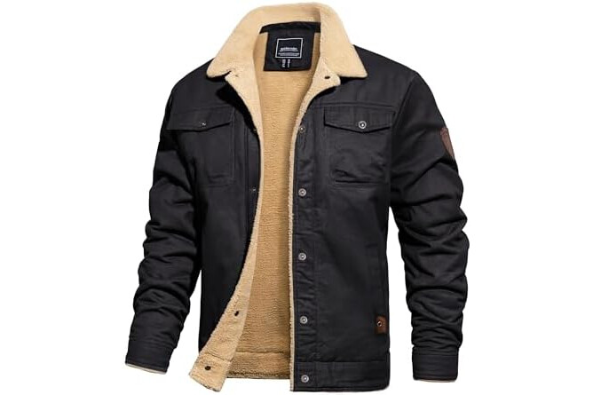 TACVASEN Mens Jacket Sherpa Lined Trucker Fleece Jacket Military Casual Cargo Jacket