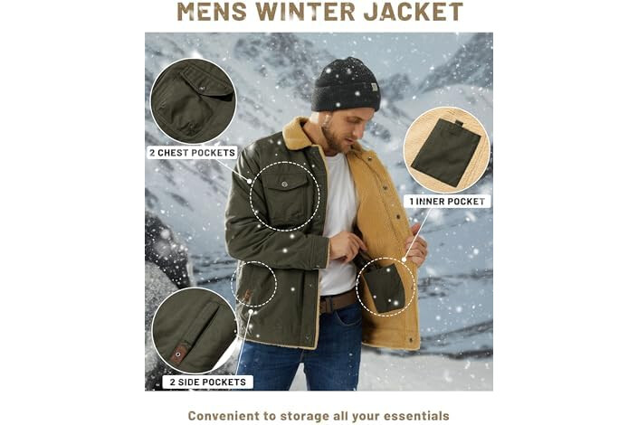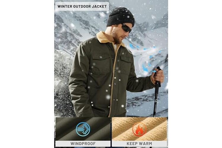 TACVASEN Mens Jacket Sherpa Lined Trucker Fleece Jacket Military Casual Cargo Jacket