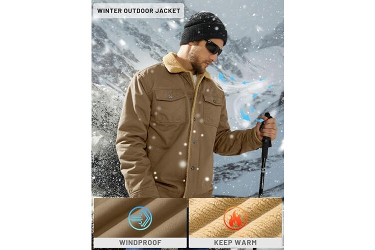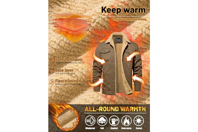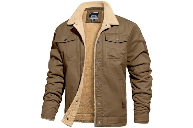 TACVASEN Mens Jacket Sherpa Lined Trucker Fleece Jacket Military Casual Cargo Jacket
