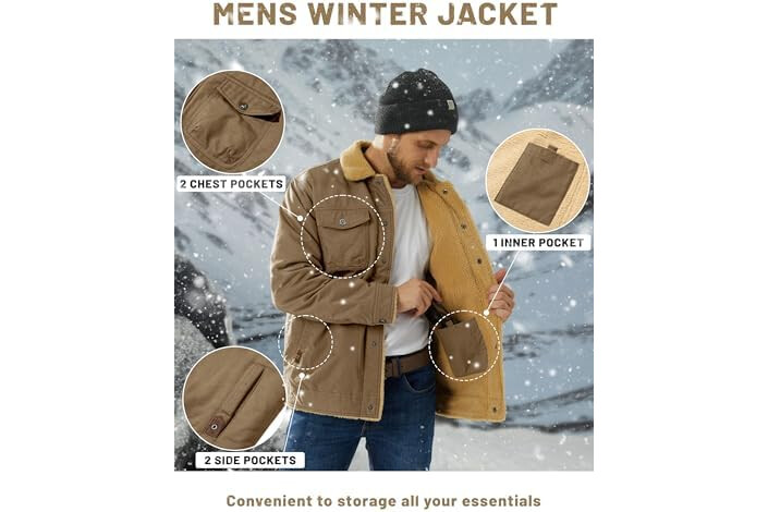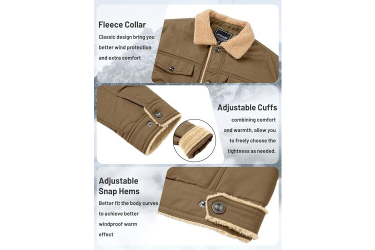 TACVASEN Mens Jacket Sherpa Lined Trucker Fleece Jacket Military Casual Cargo Jacket