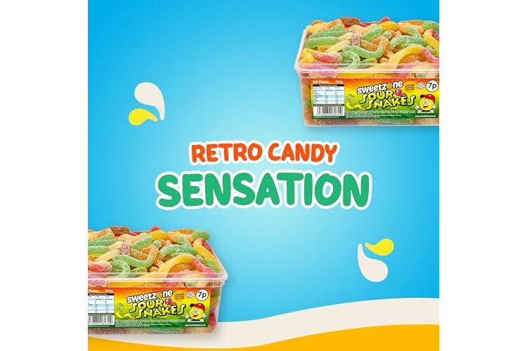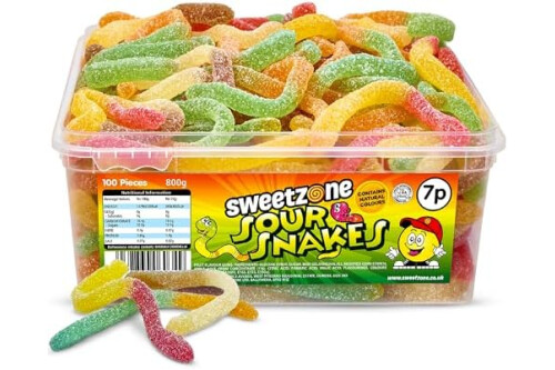 Sweetzone Sour Snakes Tub 800 g, 100 Pcs Halal Sweets Tub, Sour Sweets, Gummy Candy, Jelly Sweets, Gummies Candy, Fizzy Sweets, Tubs of Retro Sweets for Your Sweeth Tooth