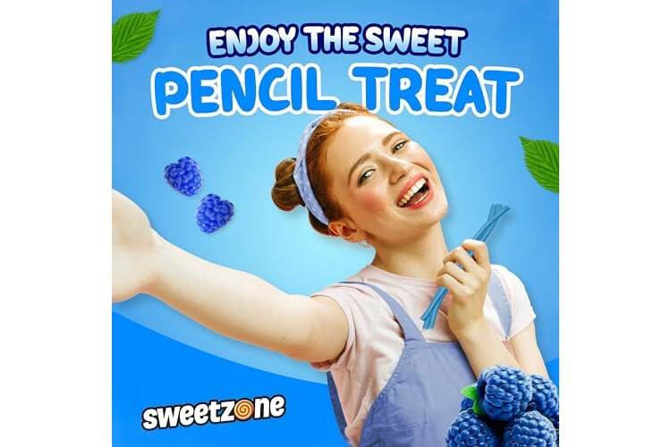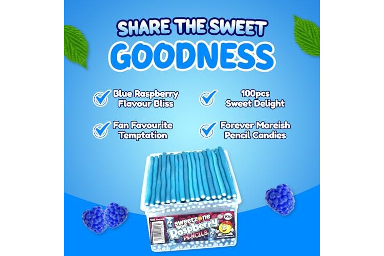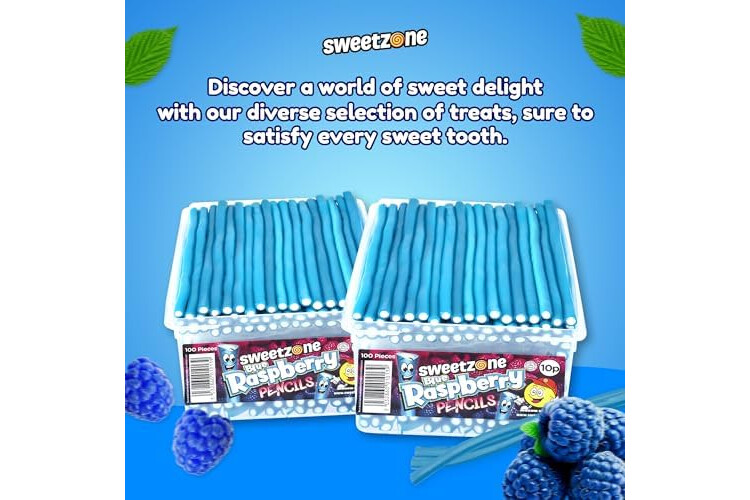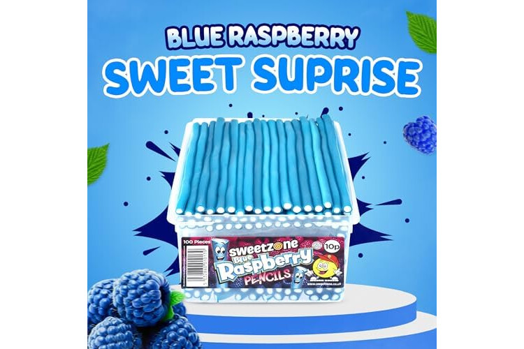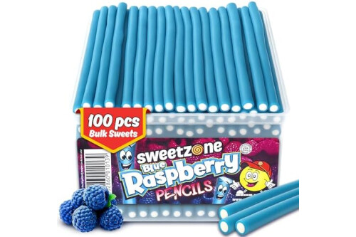 Sweetzone Blue Raspberry Pencils Tub, Pencil Sweets, 100 pc, alal Sweet, Wine gums, American Gum, British Sweets, Sweet Pie, Licorice Liquorice Allsorts, Irresistible for Candy Lovers