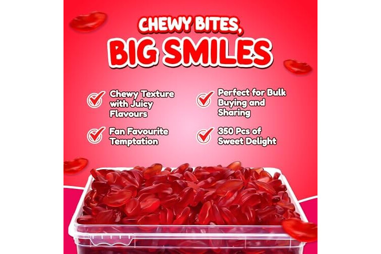 🛍️ Convenience at Its Best: Your favorite addition to pick and mix sweets, including Sweetzone Juicy Lips, in this only tub containing 350 wonderful pieces (805g). Enjoy a diverse sweet experience in every bite.