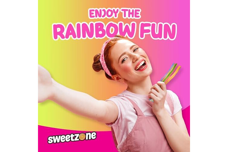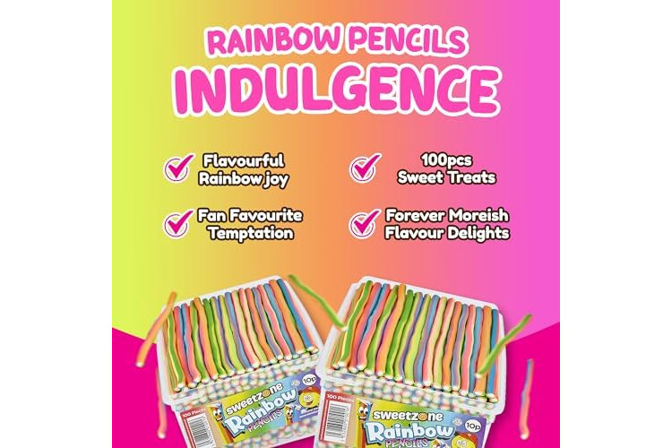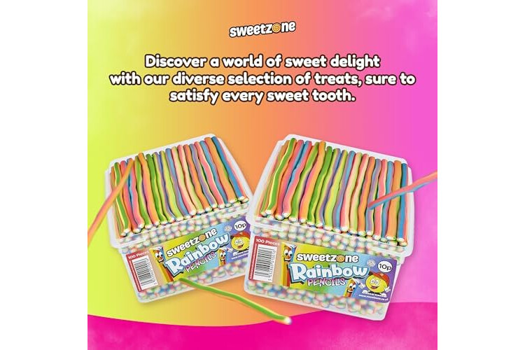 Sweetzone Rainbow Pencils, Retro Sweets Tub, Candy Sticks, 100 pcs, Halal Sweet, Sweets Bulk, Gummy American Candies, UK British Candy Enthusiasts