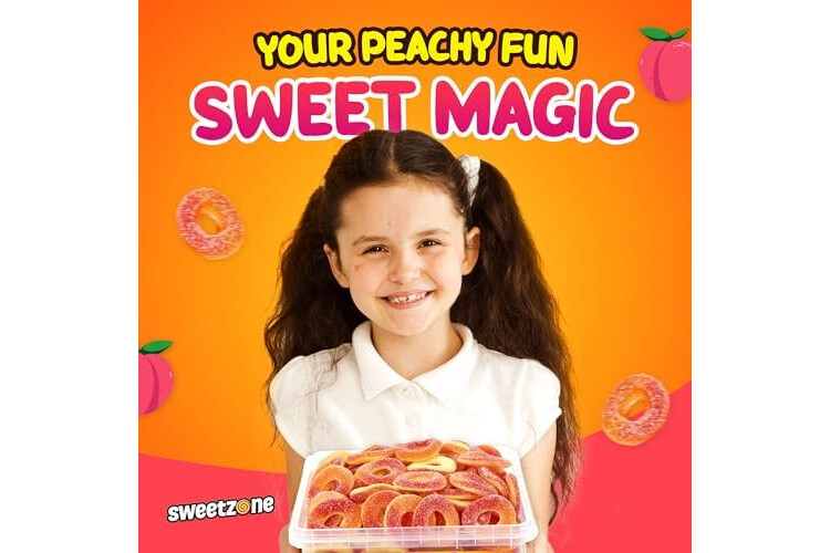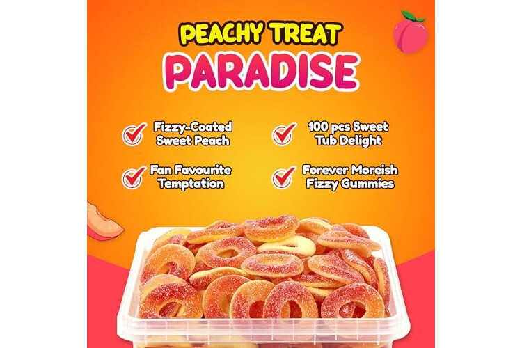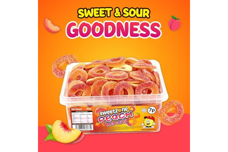 Sweetzone Sour Sweets Fizzy Peach Rings 800 g, 100 Pcs Sweet Box, Peach Rings, Sour Candy, Gummy Candy, Jelly Sweets, Bulk Sweets, Fizzy Sweets, Tubs of Sweets for Retro Sweets for Your Sweet Tooth