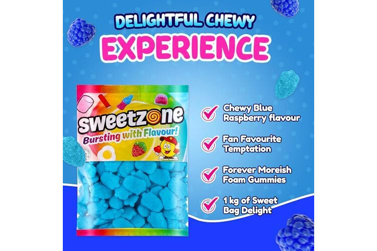 Sweetzone Jelly Foam Blue Raspberry, 1kg Bulk Bag of Soft Halal Gummy Sweets, Retro Fruit Chews Perfect for Sweet Bags, Parties and Sharing, Chewy Foam Texture with Tangy Blue Raspberry Flavour