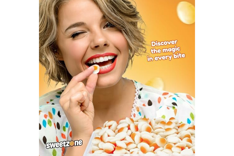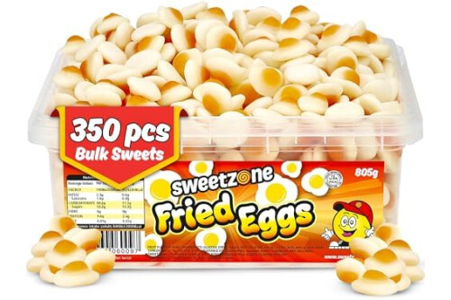 Sweetzone Mini Fried Eggs Halal Sweets Tub, 805 g 350 pcs. Tubs of Sweets, Jelly Sweet, Old Fashioned Sweet, Sweeties Bulk, Gummy Sweeties, Candy Tub Delight for All