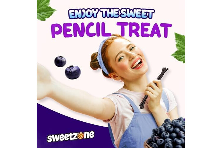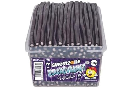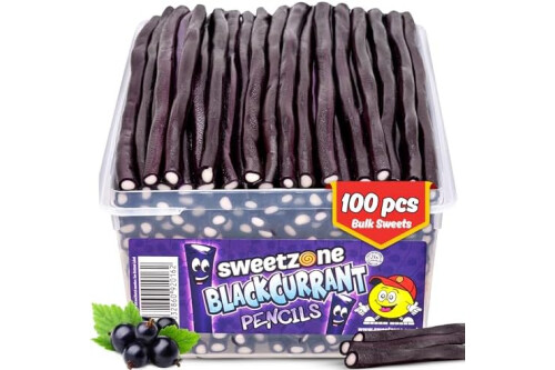 Sweetzone Blackcurrant Pencils, Retro Sweets Tub, Candy Sticks, 100 pcs, Halal Sweet, Sweets Bulk, Gummy American Candies, UK British Candy Enthusiasts
