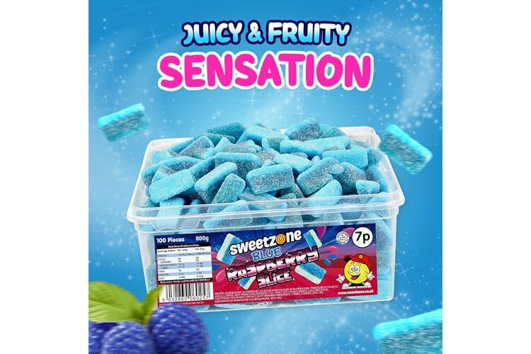 🍭👌 Your Tub of Sweets isn't Complete Without Sweetzone Blue Raspberry Slices: Satisfy your cravings with these mouthwatering gummy sweets - they're the ultimate chewy treats! Whether you're a fan of fruit jellies these blue raspberry sweets are sure to please.