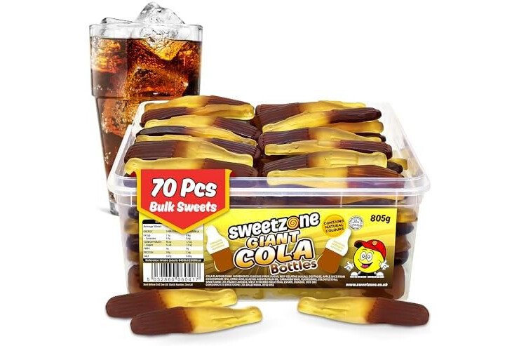 Sweetzone Giant Cola Bottles, Halal Gummy Tub, 805g 70 pcs, Bulk Retro Candy, Jelly Cola Bottle Sweets, Tubs of Fun Old Fashioned Sweets, Wine Gums and Fizzy Sweet Tub, Perfect for Any Occasion