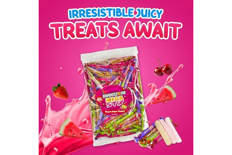 🍭🍓 Bursting with Real Fruit Flavours: Dive into a world of fruity delight with Sweetzone Mega Stix. Each stick is packed with the taste of real fruit juices, offering a chewy experience that makes these gummy sweets a favourite among kids and candy lovers alike. Satisfy your cravings with the vibrant taste of assorted flavours that bring excitement with every bite.