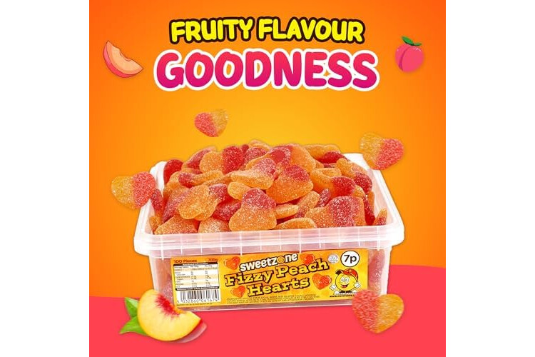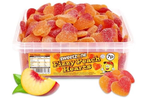 Sweetzone Fizzy Peach Hearts 700g, Fizzy Sweets, American Sweets, Retro Sweet, Bulk Sweet, American Candy Box, Gummy Candies, Sweetzone Tubs, Candies For Kids, Candy Hamper
