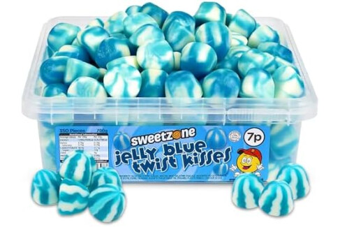 Sweetzone Jelly Blue Twist Kisses 700g, Pick and Mix Sweets, Halal Sweets, Retro Sweet, Bulk Sweet, Blue Candy, Candy Hamper, Candies Tub, Sweetzone Tubs, Candies Box, Jelly Sweeties, Pick and Mix