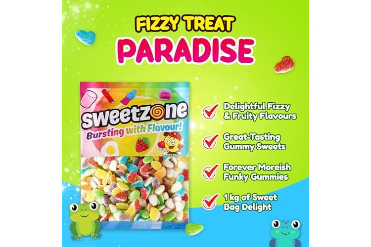 Sweetzone Fizzy Funky Frogs - Sweet Bags of Fruity Blast, Old-Fashion American Sweets for Retro Sweet Lovers, 1kg Bulk Bag, Enjoy the Irresistible Fruit Gummy Halal Sweets, Perfect for Kids and Adults