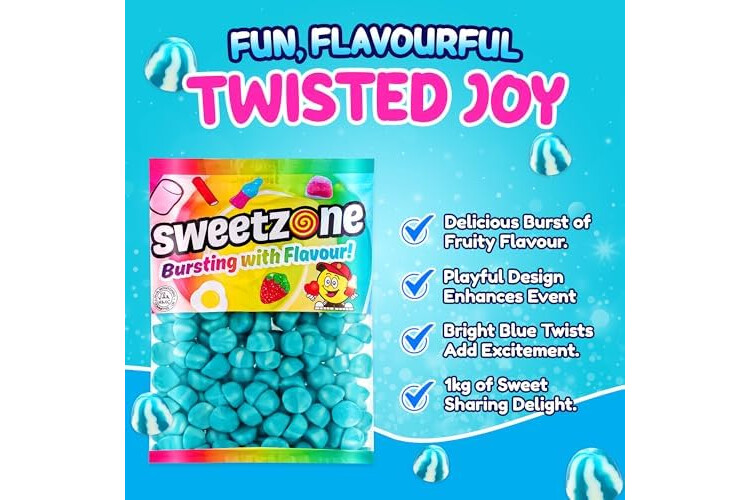Sweetzone Jelly Blue Twist Kisses 1kg, Halal Pick and Mix Sweets, Retro Jelly Sweets in Bulk, Perfect Sweet Hamper, Sweets Tub, Sweet Box, and Sweetzone Tubs, Delicious Blue Sweets for All