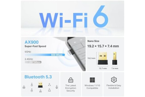 TP-Link Archer TX10UB Nano AX900 Nano Wi-Fi 6 Bluetooth 5.3 USB Adapter, Lower Latency, Higher Efficiency, and Less Congestion, Advanced Security with WPA3