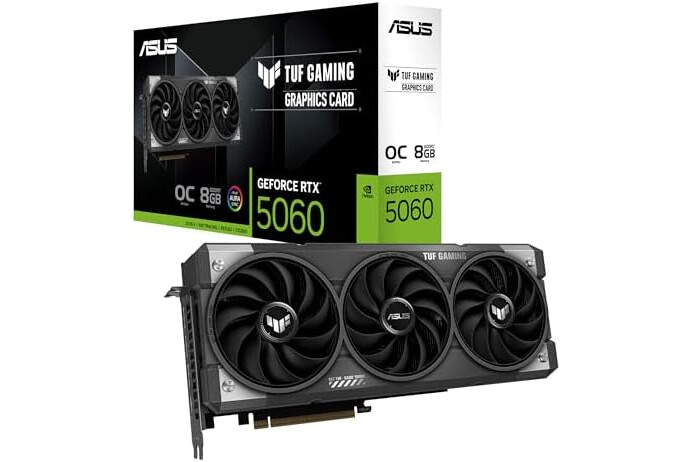 ASUS TUF GAMING RTX5060 OC, PCIe5, 8GB DDR7, HDMI, 3 DP, 2677MHz Clock, RGB Lighting, Overclocked